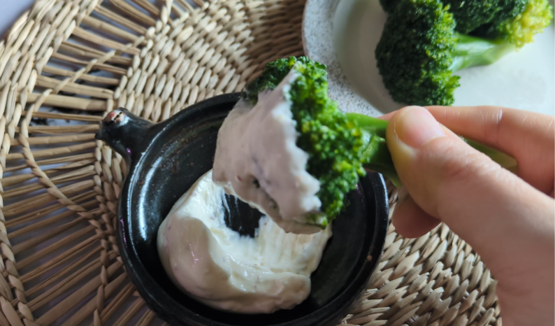 早速、できたてのフレッシュマヨネーズをブロッコリーと一緒に♪
