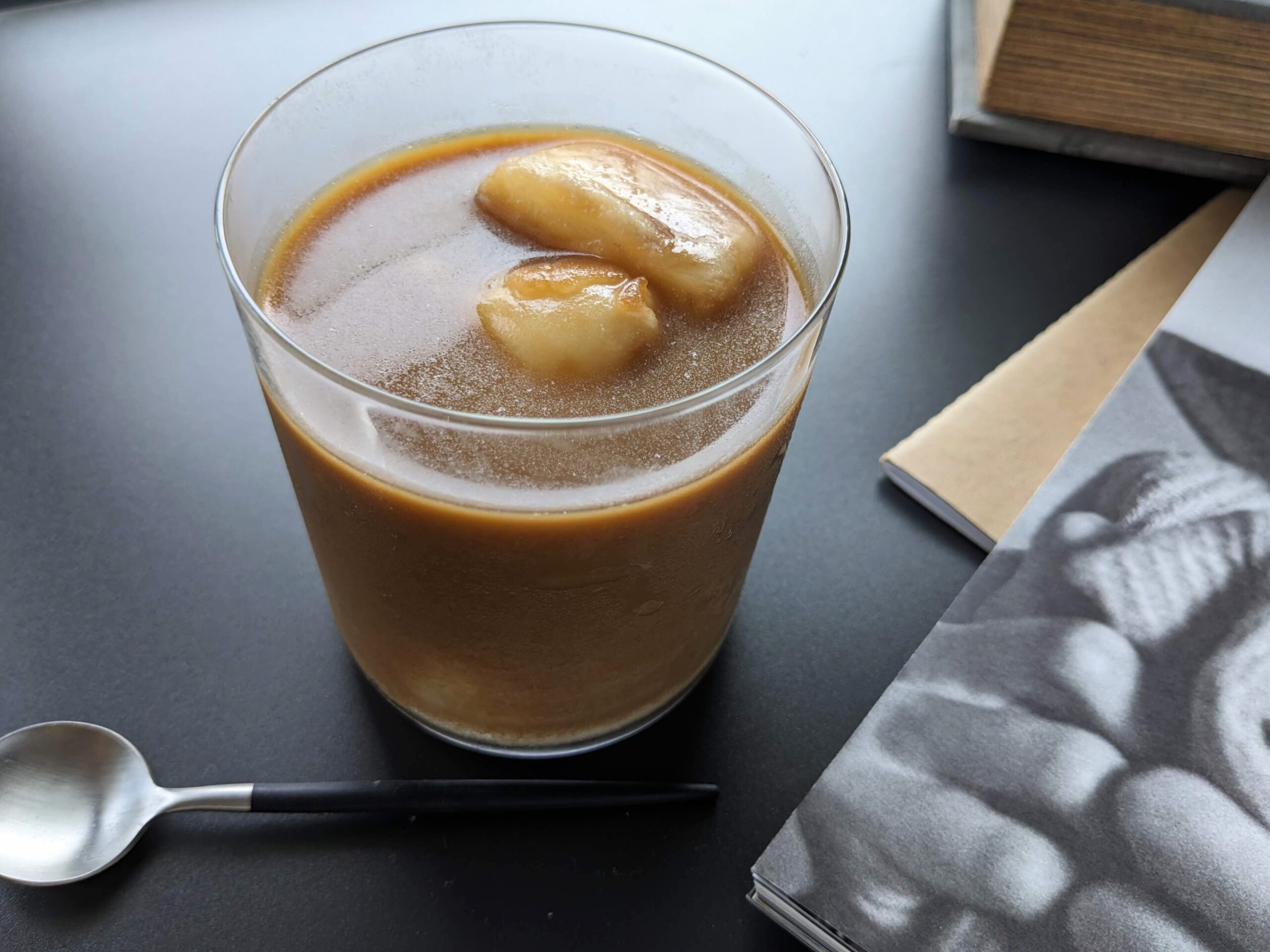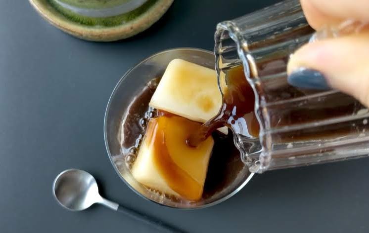 製氷器で凍らせた甘酒を溶かしながら飲む「甘酒氷コーヒー」