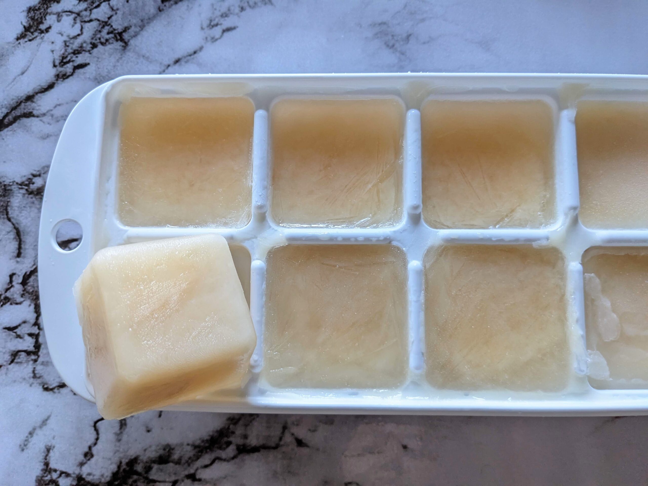 1.予め製氷器で甘酒を注ぎ冷凍庫で凍らせ、甘酒氷を作る。