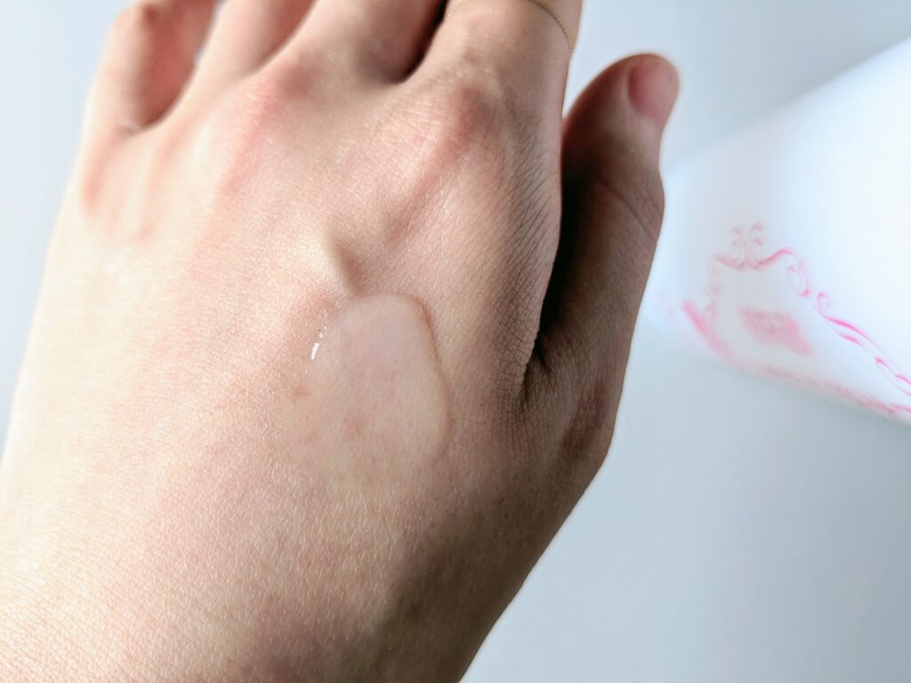 さらっとしたテクスチャーでいながら、肌にすーっとすぐ浸透してくれるので、しっとり。
