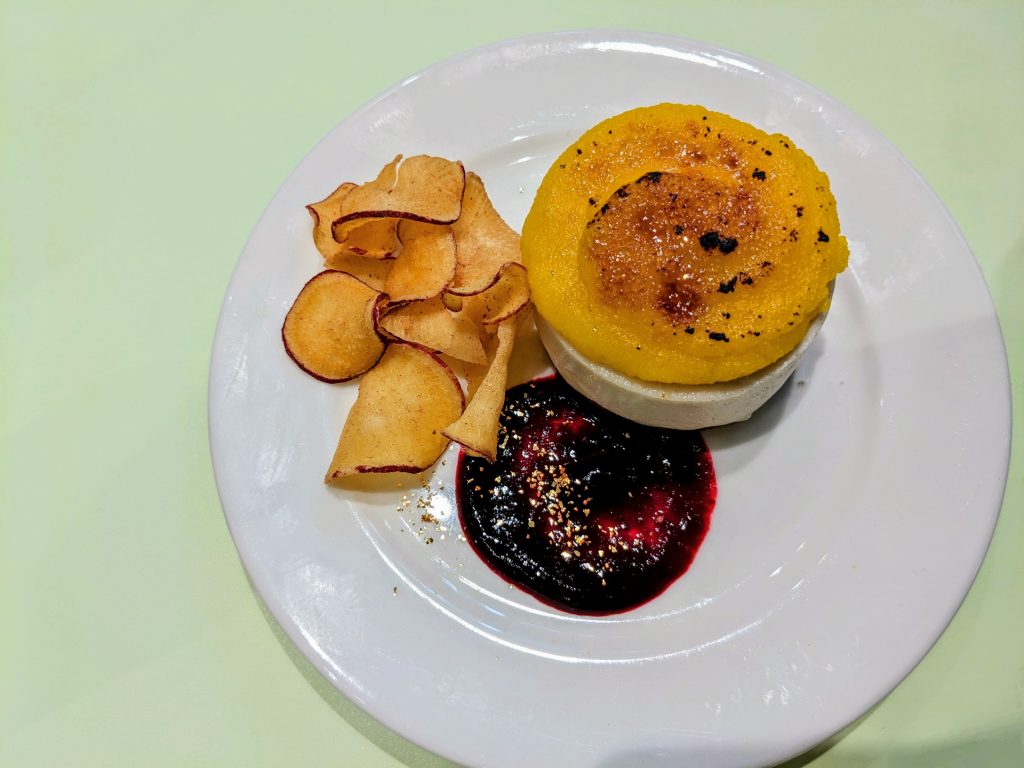 それぞれを単品で食べるのはもちろん、添えられた甘酸っぱいカシスピューレと一緒に食べたり、さつまいもチップスをディップして食べるのもおすすめだそうですよ~。