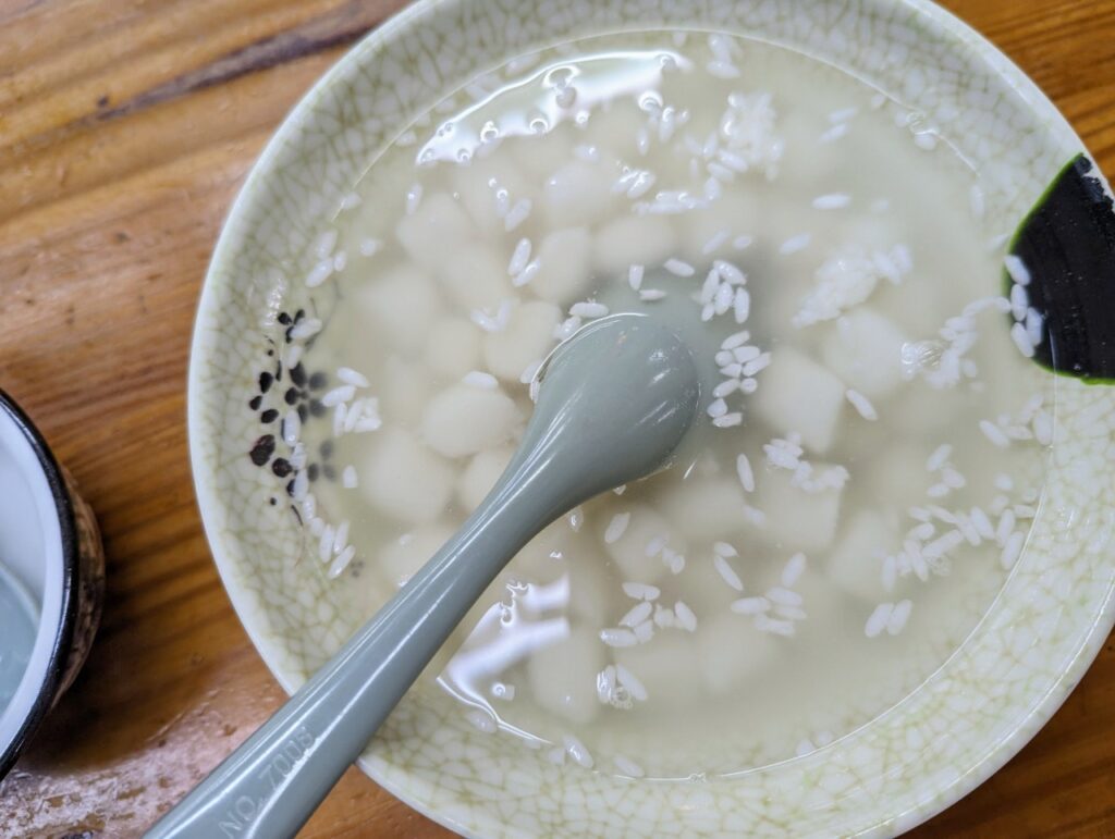 こちらの酒酿圓子は、甘酒本来の優しい甘さが際立つシンプルなもので、まさにTHEローカル酒酿圓子。