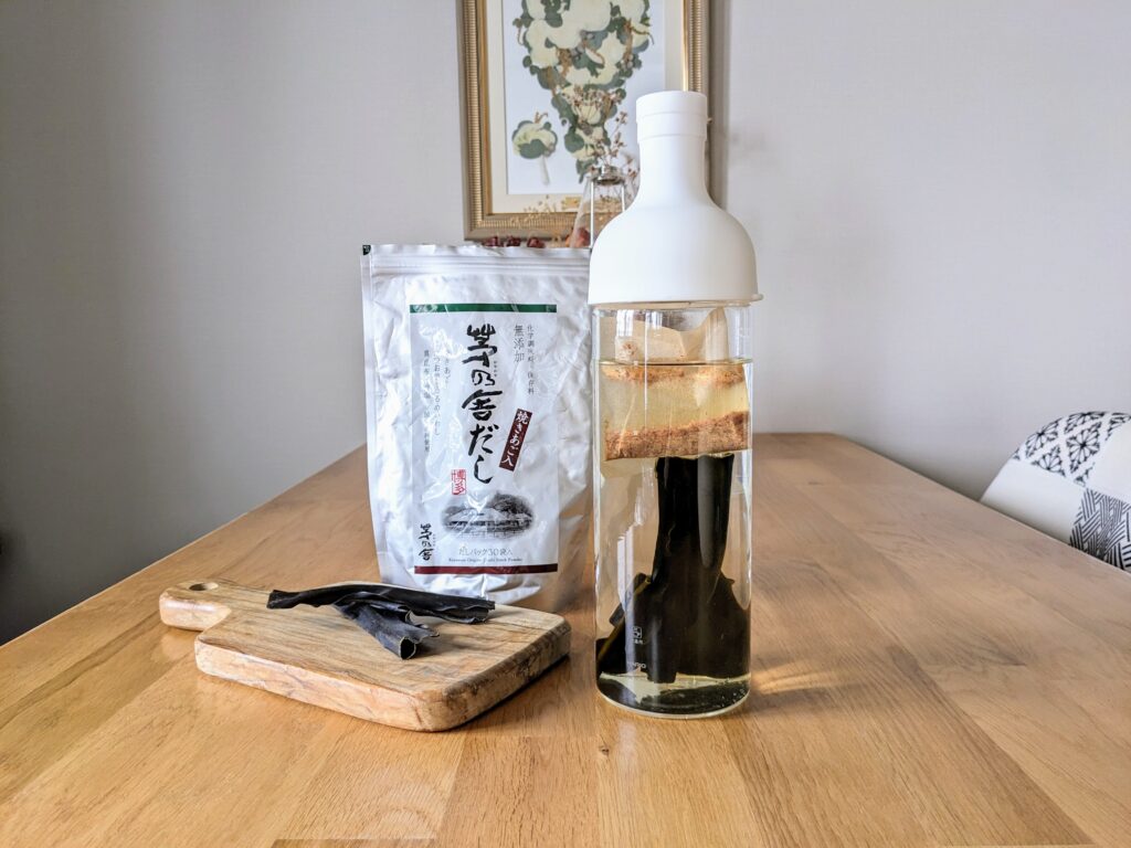※茅乃舎のだしパックと乾燥昆布の水出しお出汁。お味噌汁や煮物、卵焼きの出汁などにすぐ使えて便利。