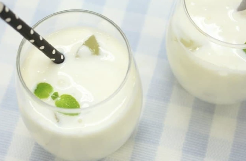 牛乳とホエーを1:1で割るだけで、簡単ラッシーが自宅で楽しめます。