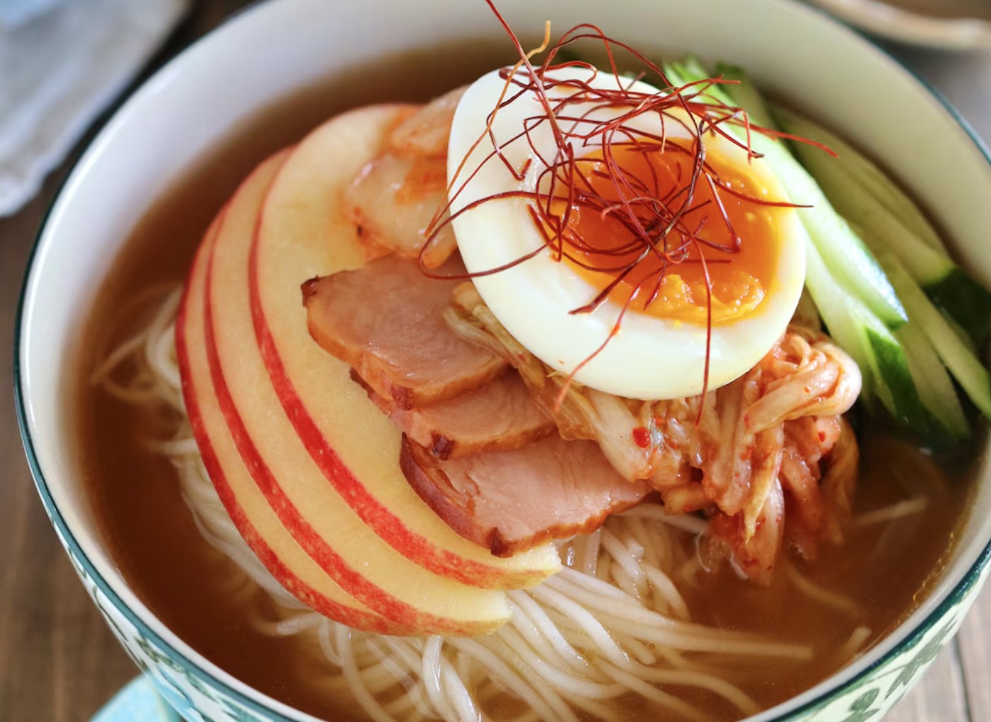 漬け汁にごま油を少量たらし、冷麺を入れて食べてもおいしいです。韓国料理店では定番のアレンジ!