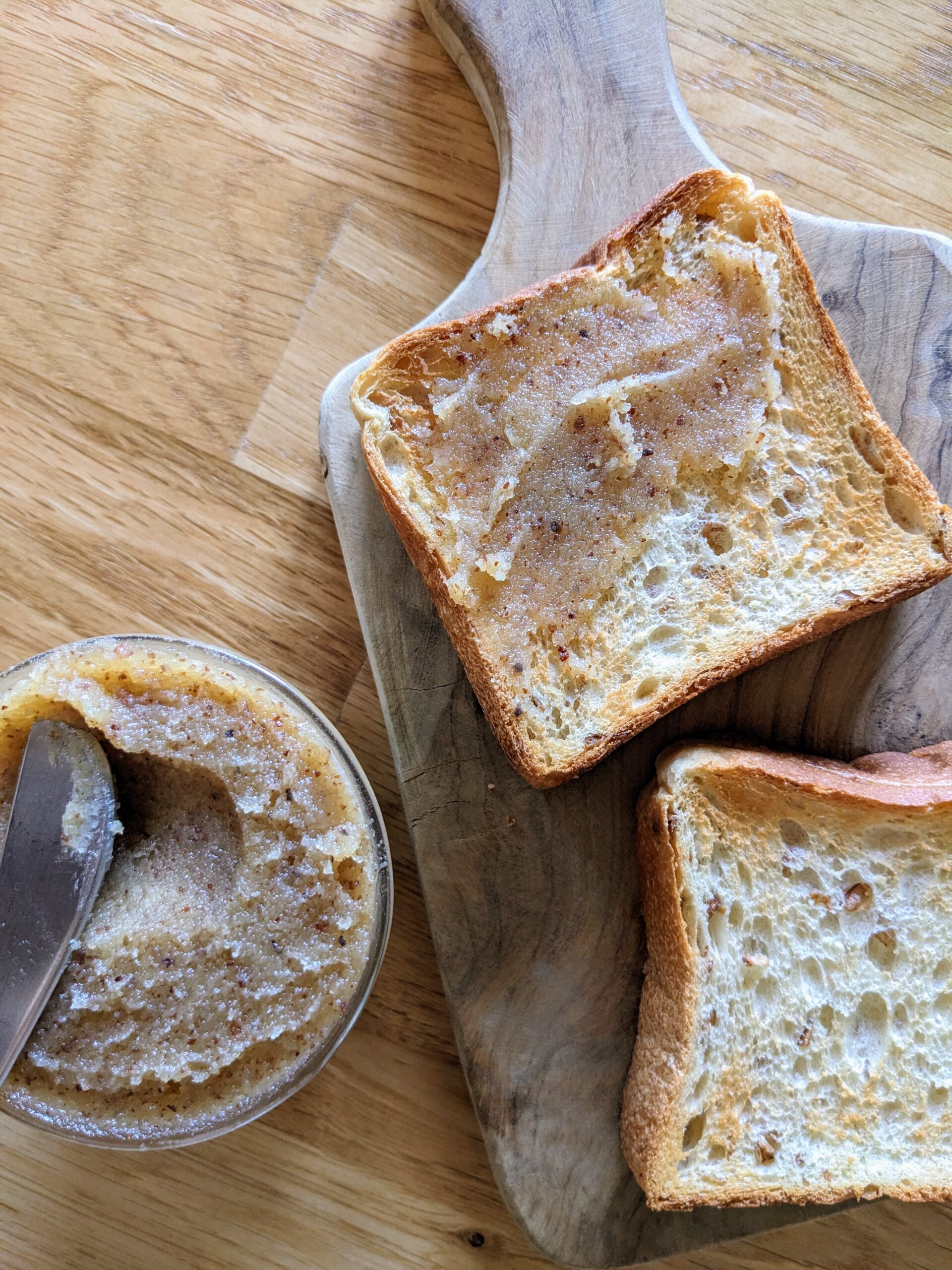 甘じょっぱい味がクセになる、甘酒のみの甘さでつくるお砂糖不使用「アーモンドスプレッド」のレシピです。