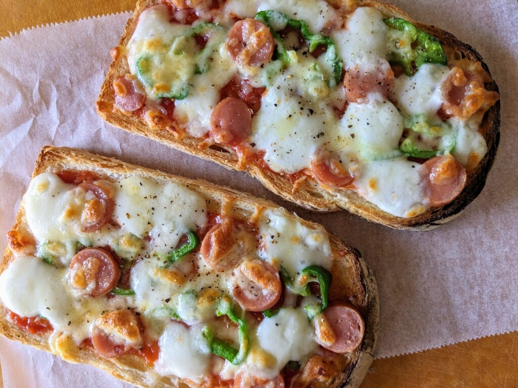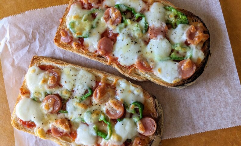 食パンにピザソースを塗ってお好みの具材、チーズを乗せれば「絶品ピザトースト」の完成です。